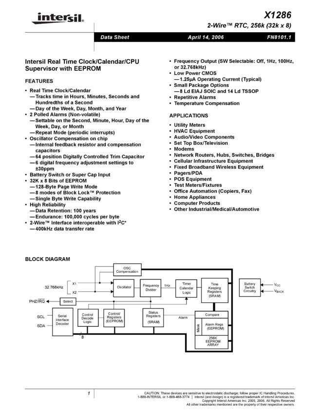 X1286 Real Time Clock/Calendar/CPU Supervisor with EEPROM