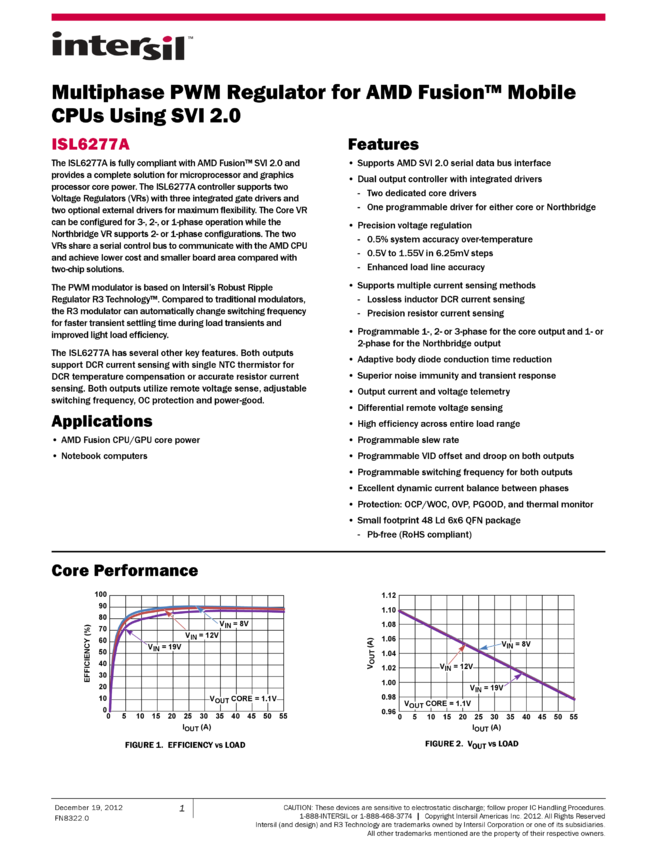ISL6277A Multiphase PWM Regulator for AMD Fusion™ Mobile CPUs Using SVI 2.0