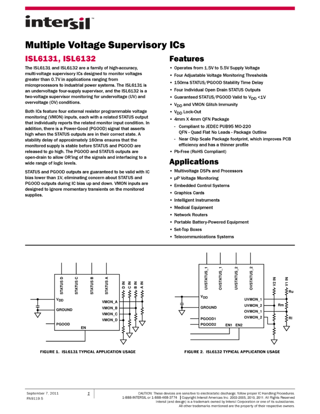 ISL6131 Multiple Voltage Supervisory ICs