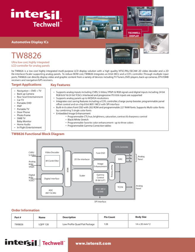 TW8826 Ultra low cost, highly integrated LCD controller for analog panels
