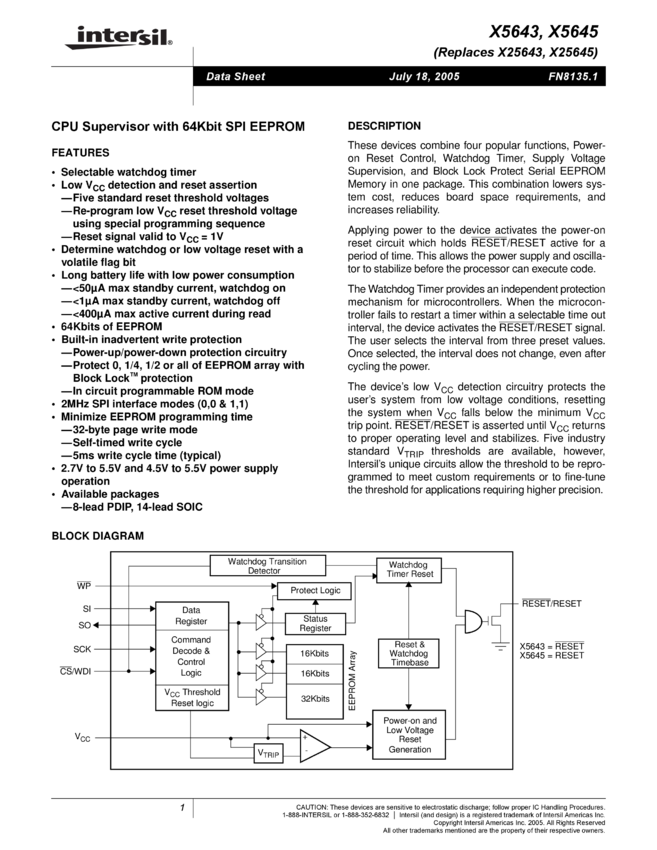 X5645 CPU Supervisor with 64Kbit SPI EEPROM