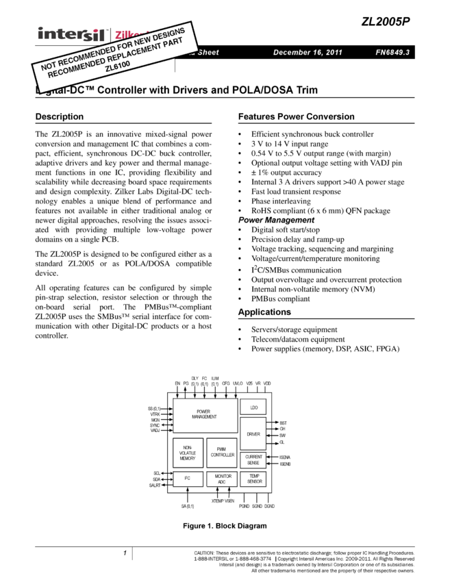 ZL2005P Digital-DC™ Controller with Drivers and POLA/DOSA Trim