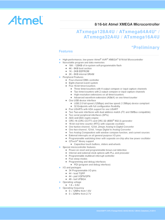 ATXMEGA128A4U-A, ATXMEGA128A4U-M, ATXMEGA16A4U-A, ATXMEGA16A4U-M, ATXMEGA32A4U-A, ATXMEGA32A4U-M, ATXMEGA64A4U-A, ATXMEGA64A4U-M