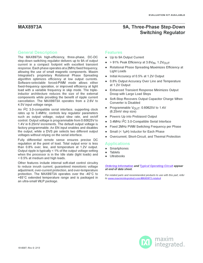 MAX8973A 9A, Three-Phase Step-Down Switching Regulator