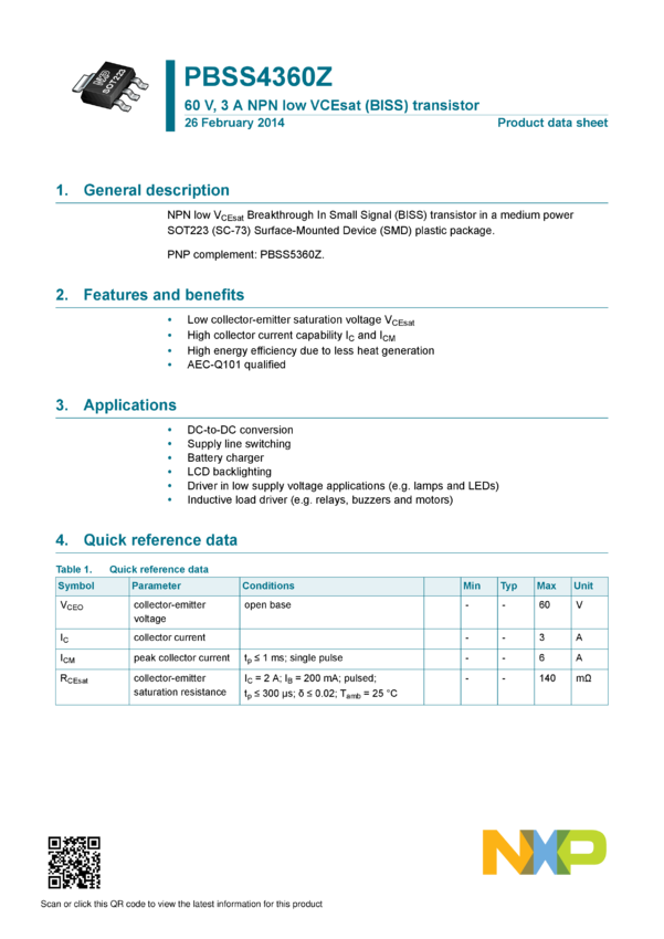 PBSS4360Z 60 V, 3 A NPN low VCEsat (BISS) transistor