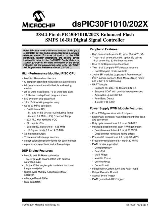 dsPIC30F1010/202X Data Sheet (03/17/2014)