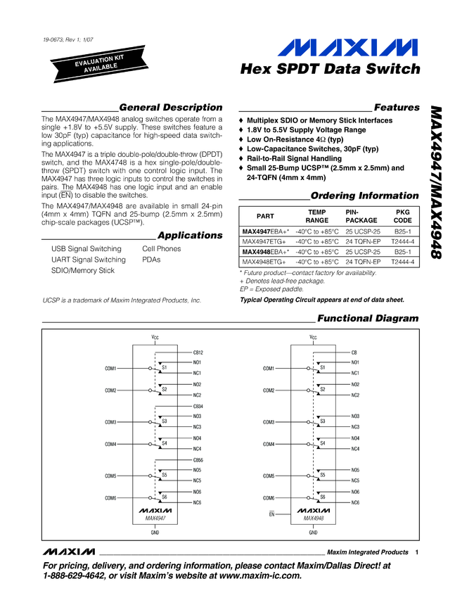 MAX4947 MAX4947, MAX4948 Hex SPDT Data Switch