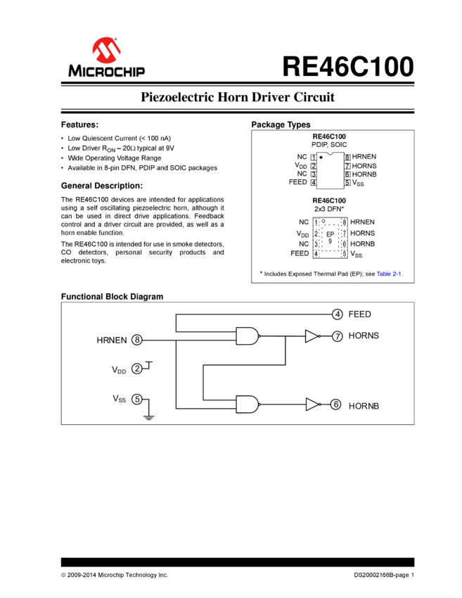 RE46C100 - Piezoelectric Horn Driver Circuit Data Sheet (06/13/2014)