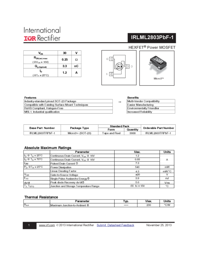 IRLML2803TRPBF-1 N-Channel 10-30V Transistor