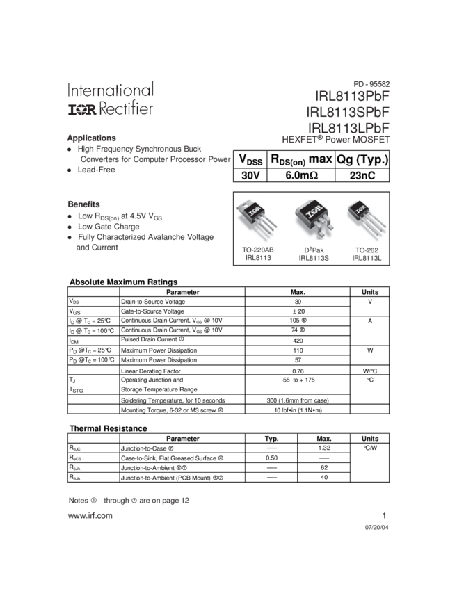 IRL8113, IRL8113L