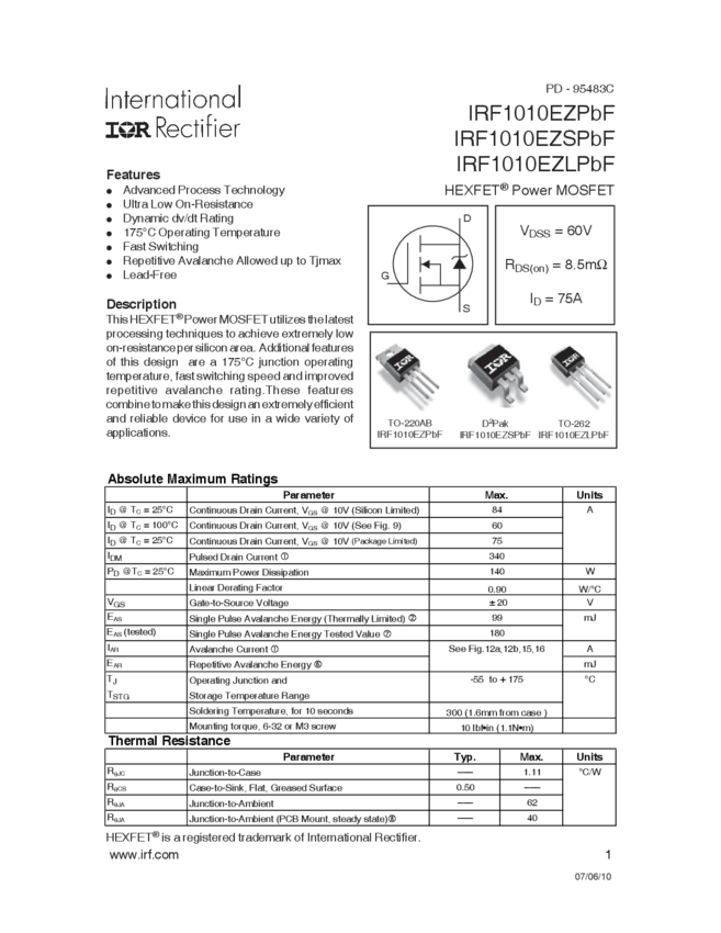 IRF1010EZ, IRF1010EZL
