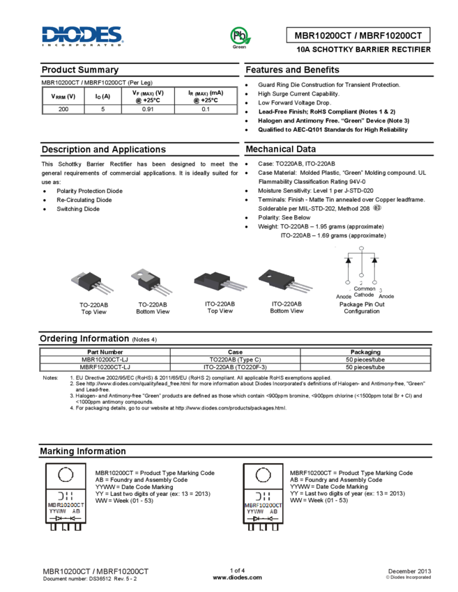MBR10200CT 10A SCHOTTKY BARRIER RECTIFIER