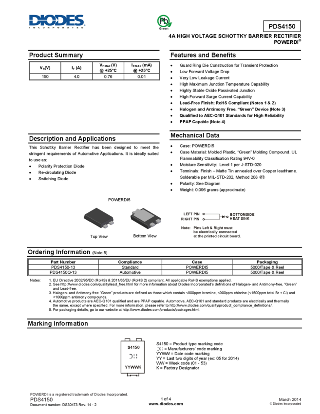 PDS4150 4A HIGH VOLTAGE SCHOTTKY BARRIER RECTIFIER