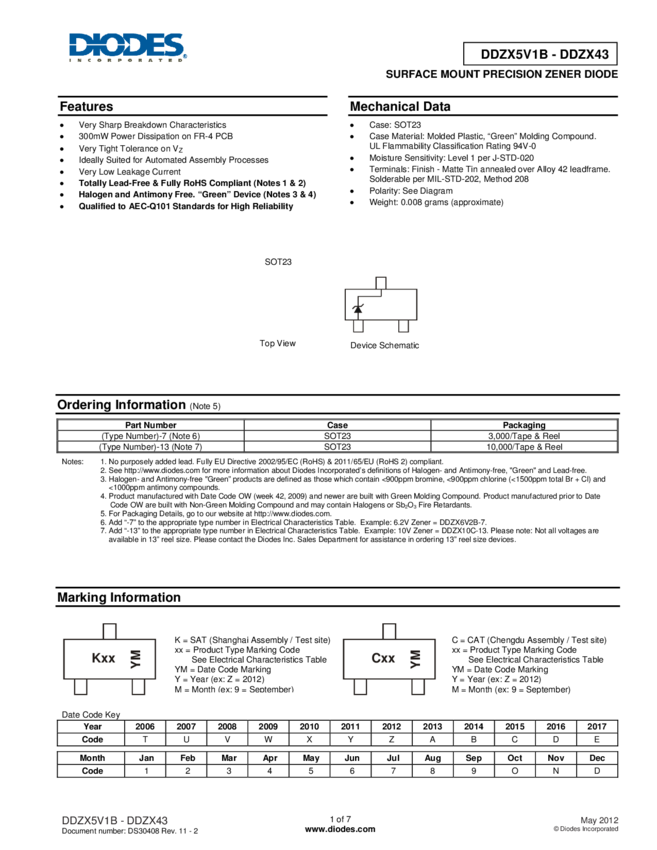 DDZX10C, DDZX11C, DDZX12C, DDZX13B, DDZX14, DDZX15, DDZX16, DDZX18C, DDZX20C, DDZX22D, DDZX24C, DDZX27D, DDZX30D, DDZX33, DDZX36, DDZX39F, DDZX43, DDZX5V6B, DDZX6V2B, DDZX6V8C, DDZX7V5C, DDZX8V2C, DDZX9V1C