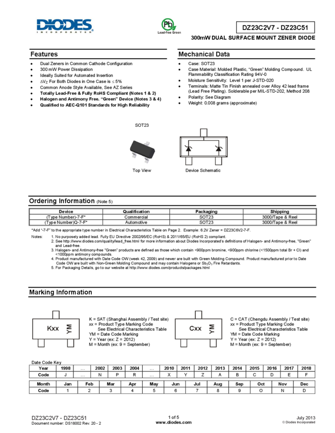 DZ23C10, DZ23C11, DZ23C12, DZ23C13, DZ23C15, DZ23C16, DZ23C18, DZ23C20, DZ23C22, DZ23C24, DZ23C27, DZ23C2V7, DZ23C30, DZ23C33, DZ23C36, DZ23C39, DZ23C3V0, DZ23C3V3, DZ23C3V6, DZ23C3V9, DZ23C43, DZ23C47, DZ23C4V3, DZ23C4V7, DZ23C51, DZ23C5V1, DZ23C6V2, DZ23C6V8, DZ23C7V5, DZ23C8V2