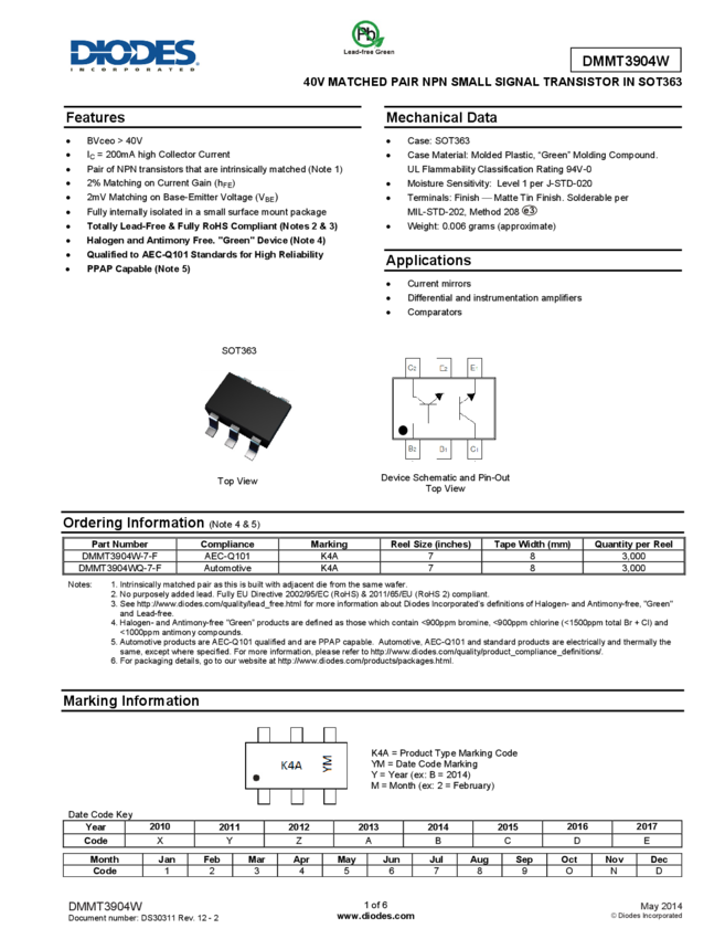 DMMT3904W MATCHED NPN SMALL SIGNALSURFACE MOUNT TRANSISTOR