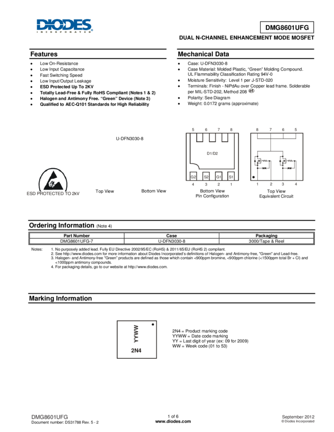 DMG8601UFG DUAL N-CHANNEL ENHANCEMENT MODE MOSFET