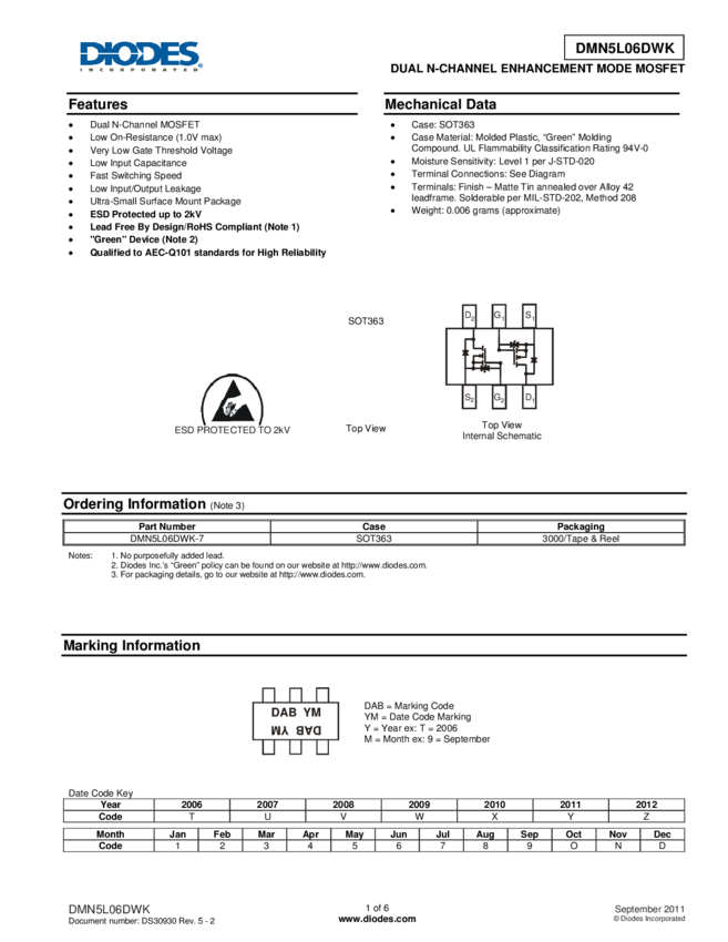 DMN5L06DWK DUAL N-CHANNEL ENHANCEMENT MODE MOSFET