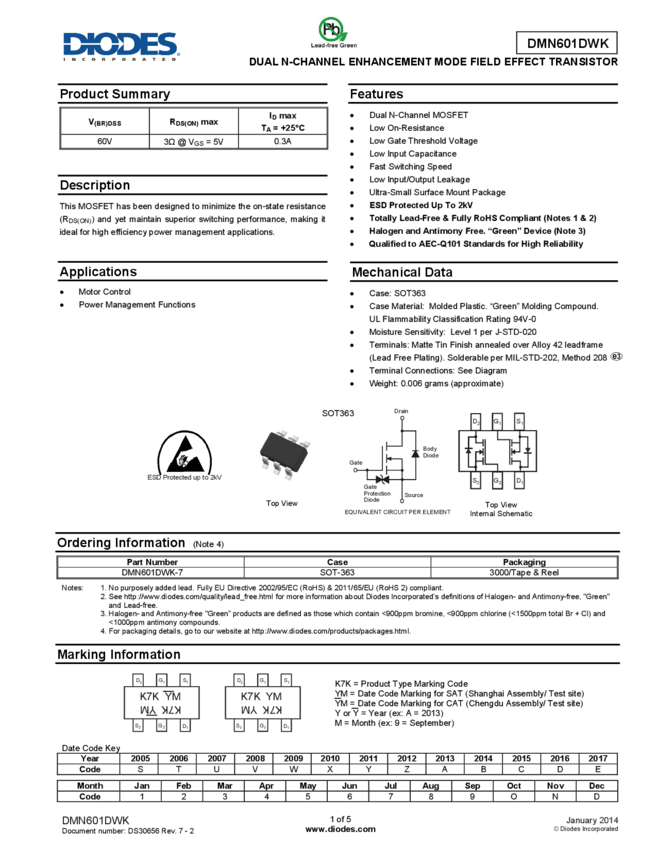 DMN601DWK DUAL N-CHANNEL ENHANCEMENT MODE FIELD EFFECT TRANSISTOR
