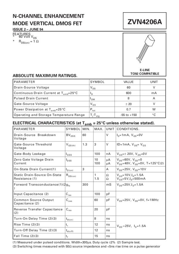 ZVN4206A N-CHANNEL ENHANCEMENT MODE VERTICAL DMOS FET