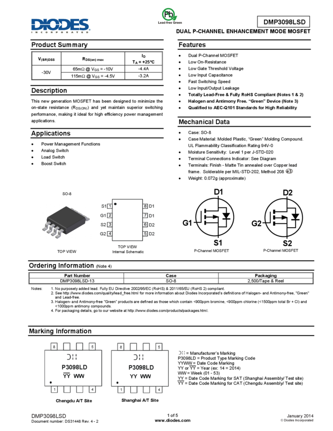 DMP3098LSD DUAL P-CHANNEL ENHANCEMENT MODE MOSFET