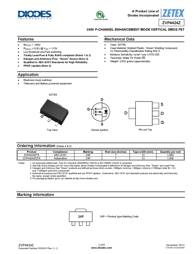 ZVP4424Z P-CHANNEL ENHANCEMENT MODE VERTICAL DMOS FET