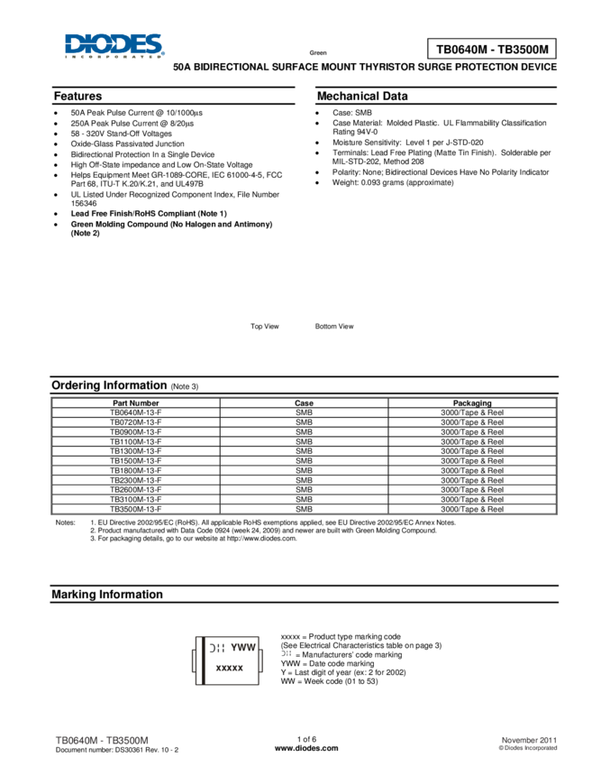 TB1500M 100A BIDIRECTIONAL SURFACE MOUNT THYRISTOR SURGE PROTECTIVE DEVICE