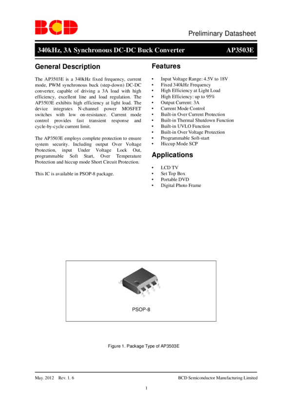 AP3503E 340kHz, 3A SYNCHRONOUS DC-DC BUCK CONVERTER