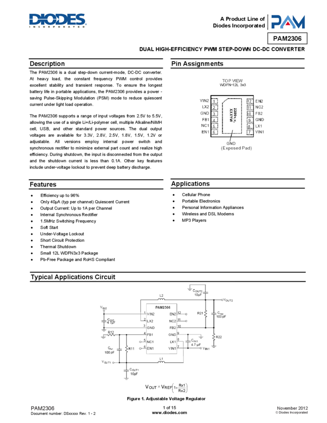 PAM2306 DUAL HIGH-EFFICIENCY PWM STEP-DOWN DC-DC CONVERTER