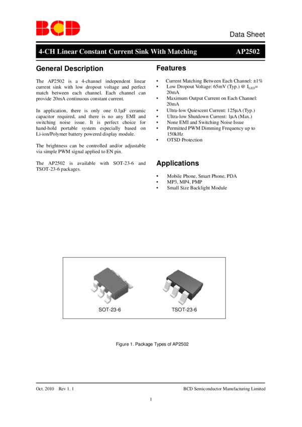 AP2502 4-CH Linear Constant Current Sink With Matching