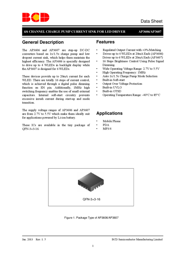 AP3606 4/6 CHANNEL CHARGE PUMP CURRENT SINK FOR LED DRIVER