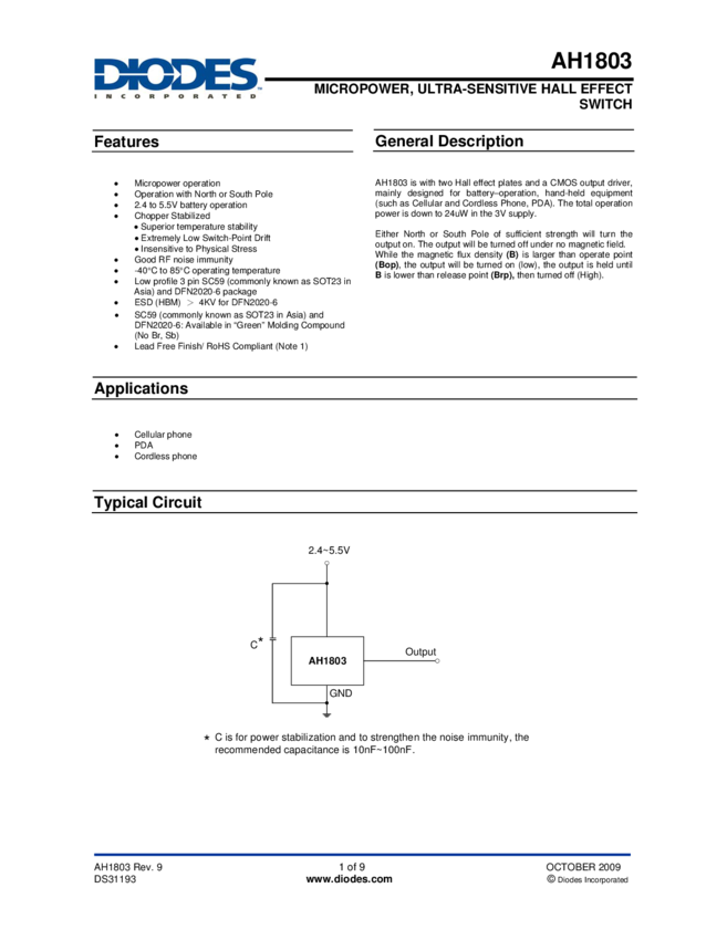 AH1803 MICROPOWER ULTRA-SENSITIVE HALL-EFFECT SENSOR