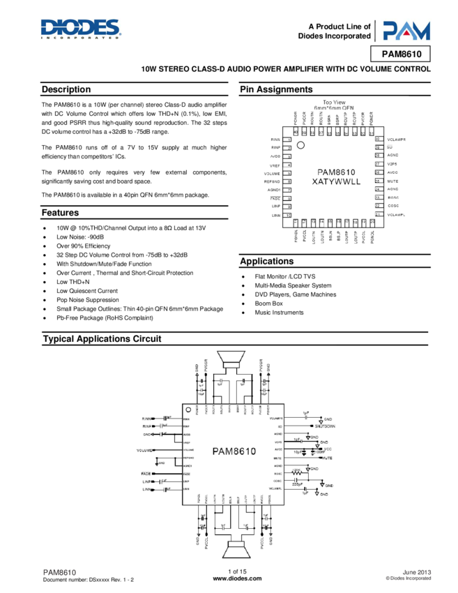 PAM8610 10W STEREO FILTERLESS CLASS-D AUDIO AMPLIFIERWITH DC VOLUME CONTROL