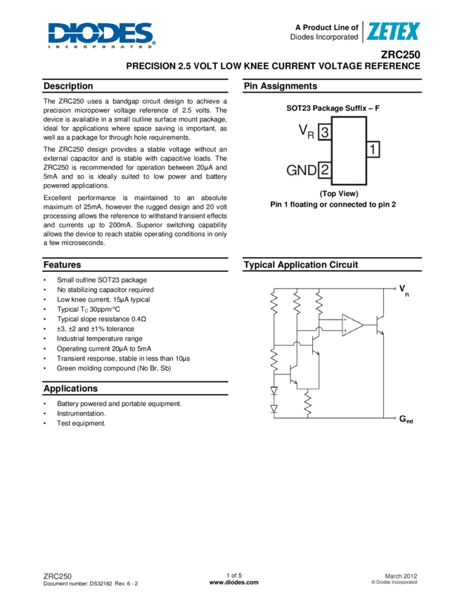 ZRC250 Precision 2.5V Low Knee Current Voltage Reference