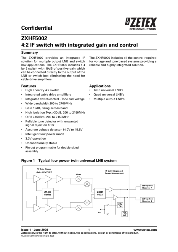 ZXHF5002JB24 4:2 IF Switch with Integrated Gain and Control