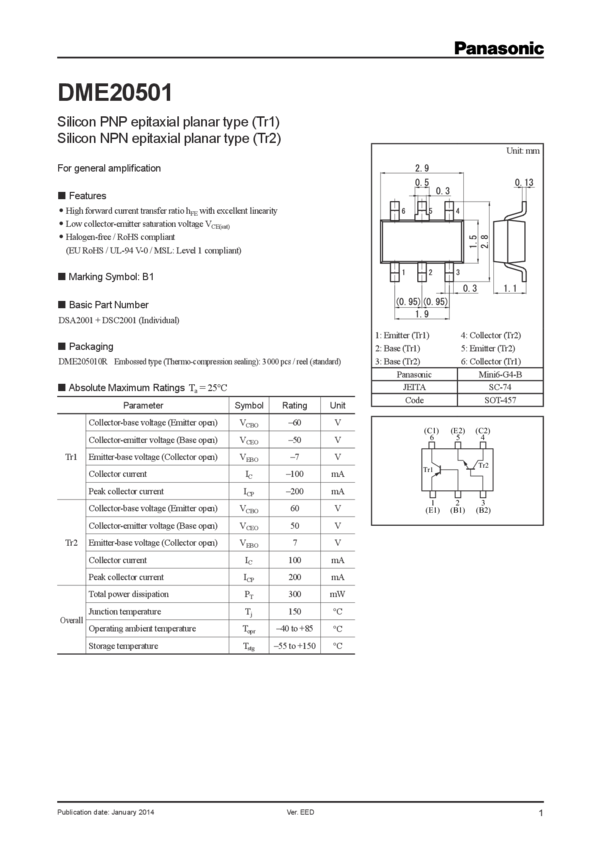 DME20501 Composite Transistors (PNP + NPN Series)
