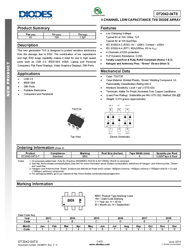 DT2042-04TS 4 CHANNEL LOW CAPACITANCE TVS DIODE ARRAY
