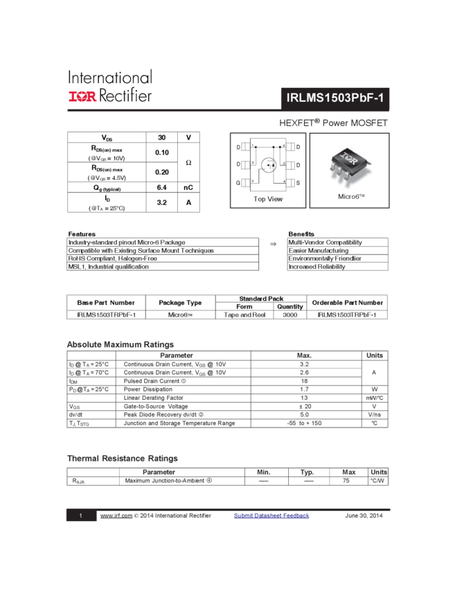 IRLMS1503PBF-1 N-Channel 10-30V Transistor
