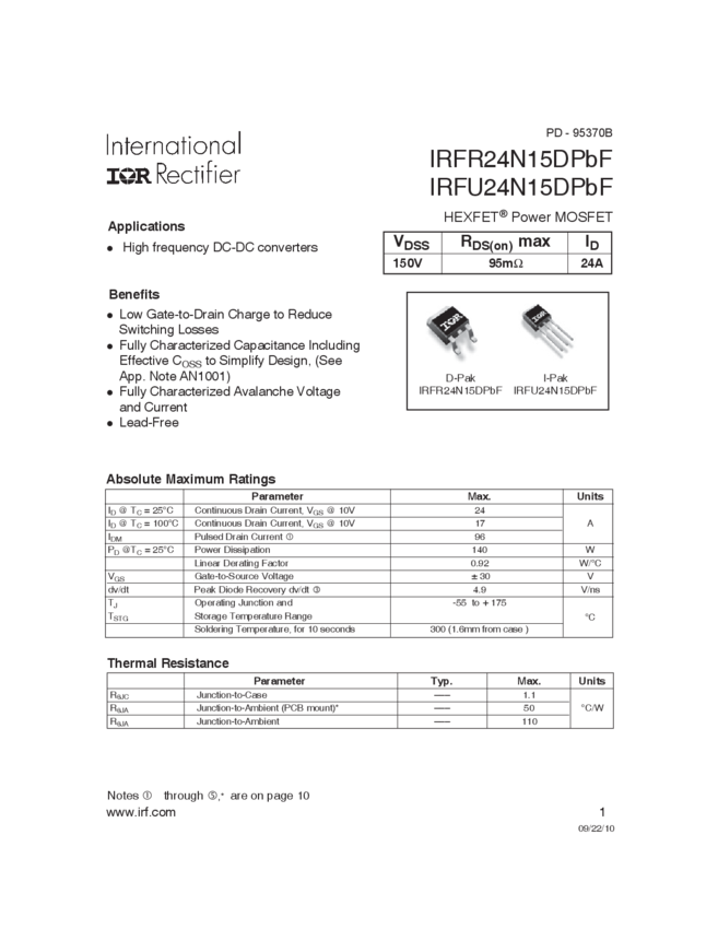 IRFU24N15D N-Channel 76-500V Transistor