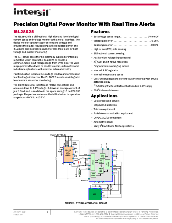 ISL28025 Precision Digital Power Monitor With Real Time Alerts