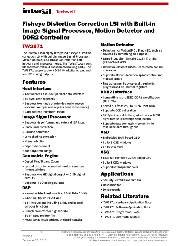 TW2871 Fisheye Distortion Correction LSI with Built-in Image Signal Processor, Mot...