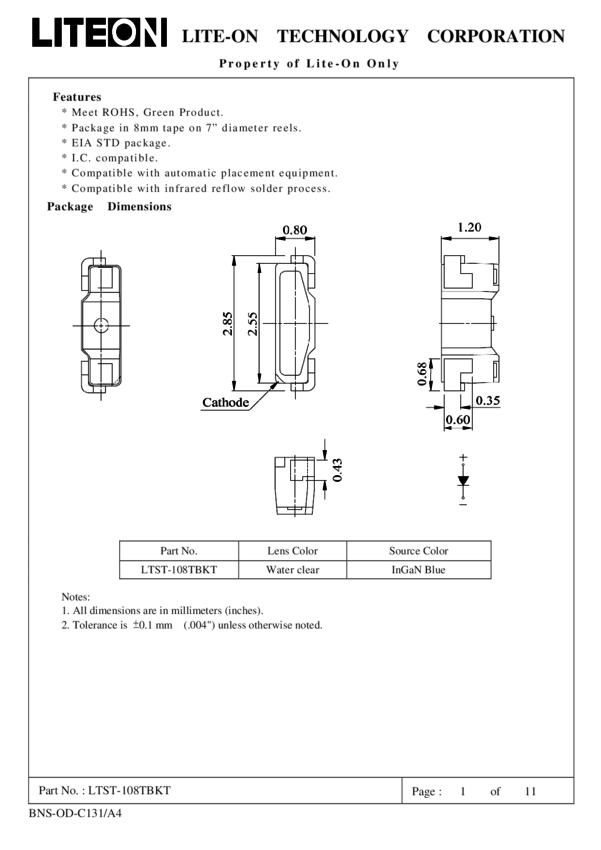 LTST-108TBKT SMD LED - Side View Single Color PLCC