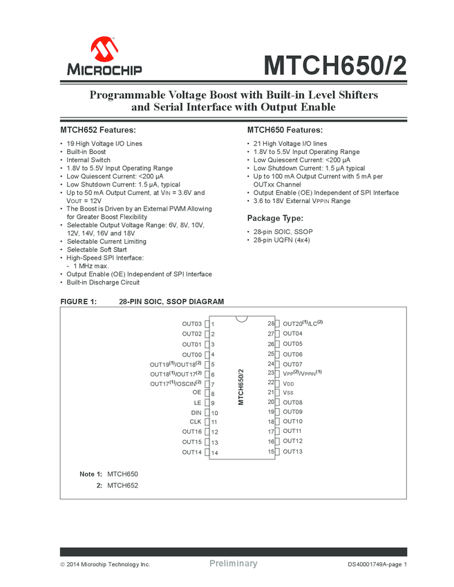 MTCH650 MTCH650/2 Programmable Voltage Boost with Built-In Level Shifters (09/19/20...