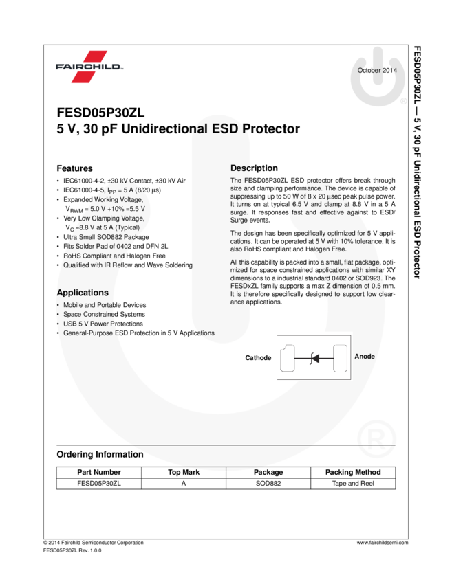 FESD05P30ZL 5 V, 30 pF Unidirectional ESD Protector