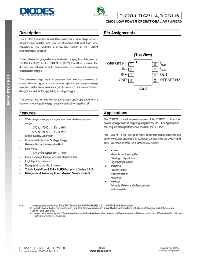 TLC27L1AI, TLC27L1BC, TLC27L1BI, TLC27L1C, TLC27L1I