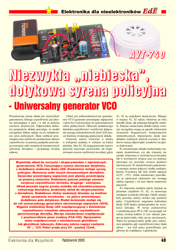 AVT740 Niezwykła niebieska dotykowa syrena policyjna