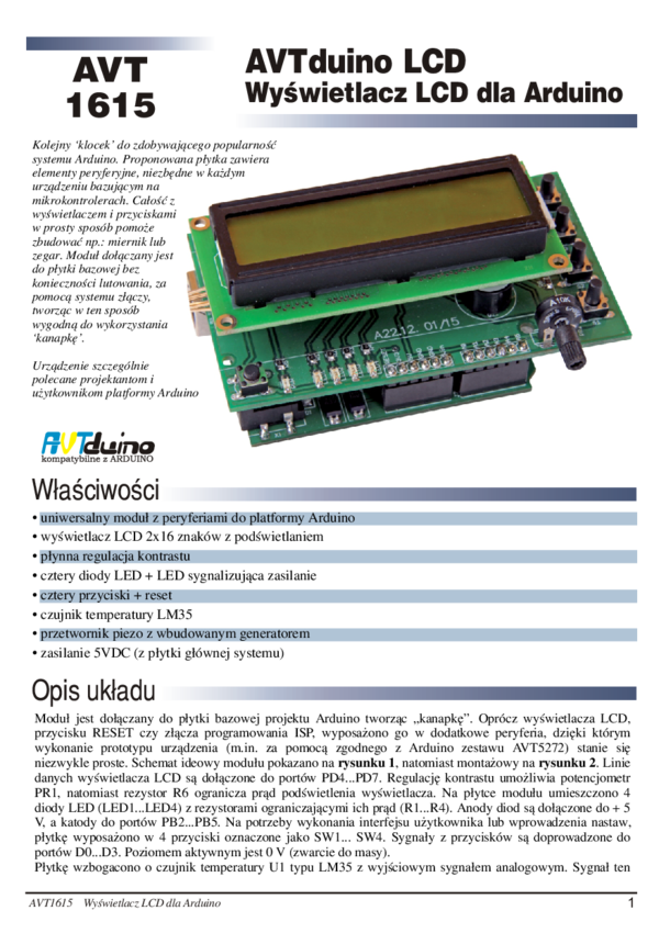 AVT1615 AVTduino LCD - wyświetlacz dla Arduino
