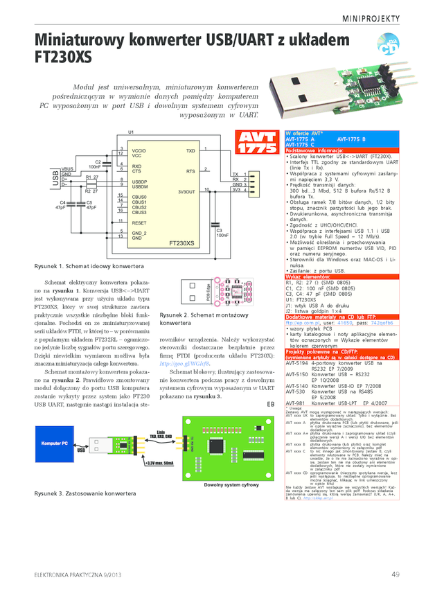 AVT1775 Miniaturowy konwerter USB - UART z FT230XS
