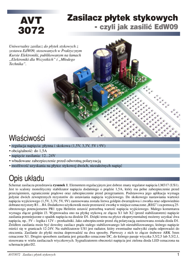 AVT3072 Zasilacz płytek stykowych, czyli jak zasilić EDW09