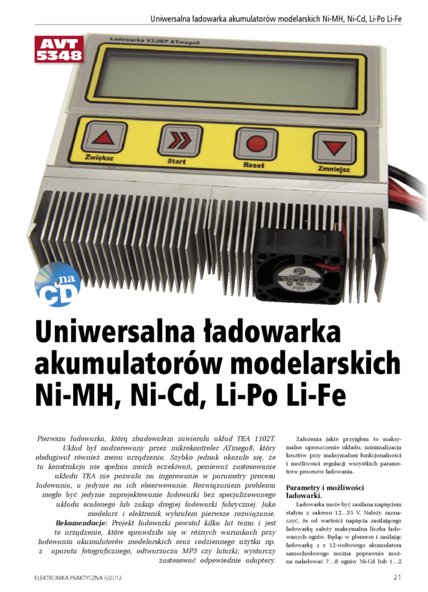 AVT5348 A Ładowarka akumulatorów modelarskich NiCd, NiMH, LiPo, LiFe - płytka druko...